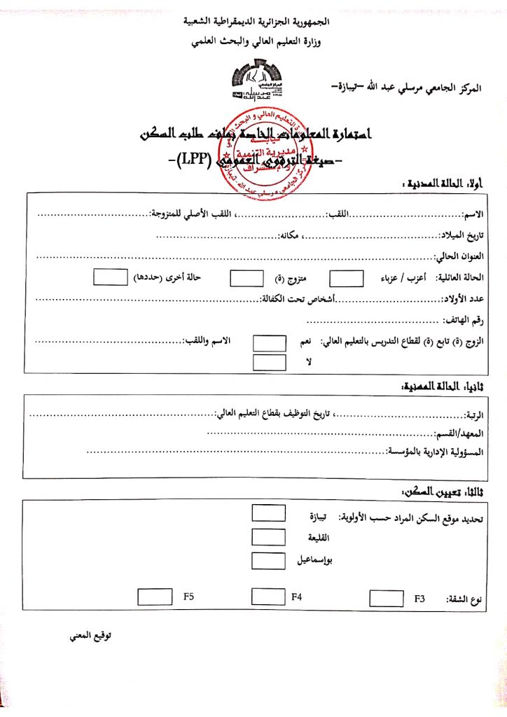 ملاحظة : يرجى ارفاق طلب خطي مع الاستمارة