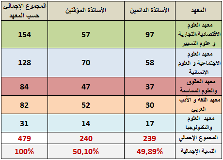 1-2-/ تعداد الأساتذة الدائمين و المؤقتين حسب المعاهد 2-2/ إحصائيات التغطية بالأساتذة الدائمين حسب المعهد للسنة الجامعية