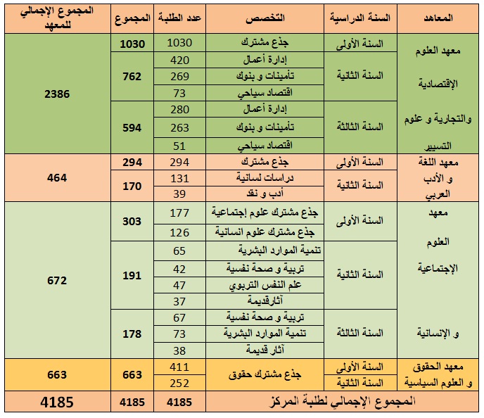 جدول إحصائيات الطلبة حسب المعاهد و التخصص للسنة الجامعية (2014/2015):