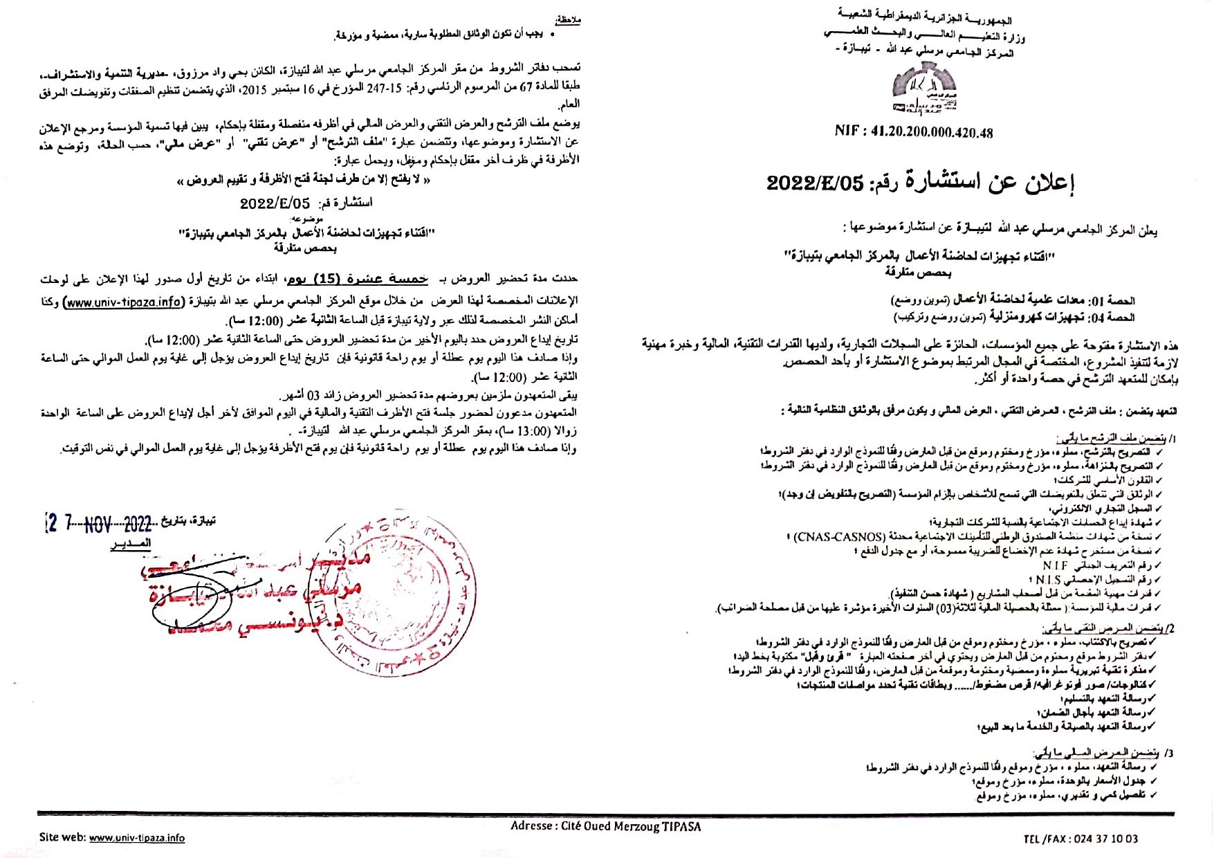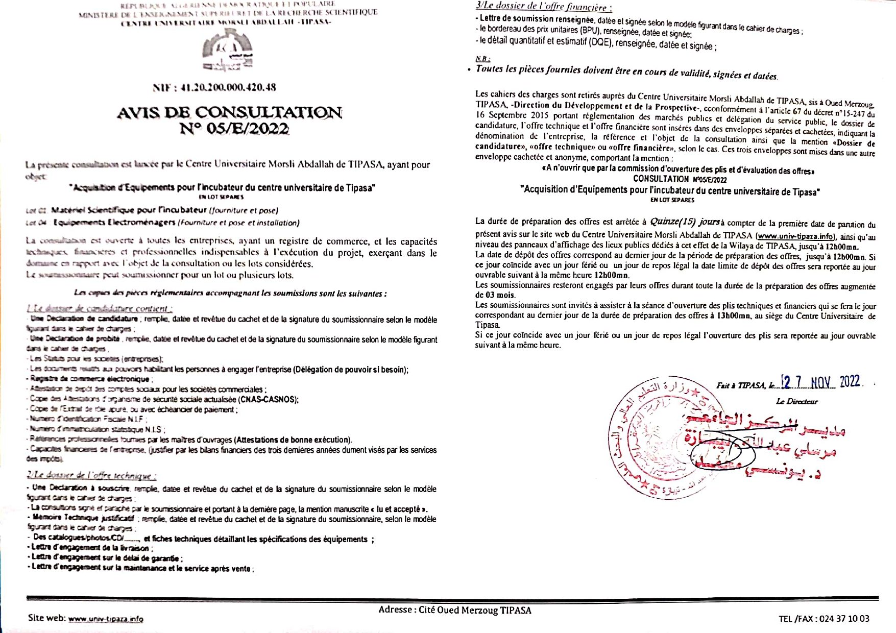 الرئيسية/إعلانات/إستشارات/إعلان عن إستشارة لإقتناء تجهيزات لحاضنة الأعمال بالمركز الجامعي تيبازة إستشاراتمناقصات إعلان عن إستشارة لإقتناء تجهيزات لحاضنة الأعمال بالمركز الجامعي تيبازة 27 نوفمبر 2022 924 أقل من دقيقة 27 نوفمبر 2022 924 أقل من دقيقة اظهر المزيد شاركها فيسبوك تويتر لينكدإن مشاركة عبر البريد طباعة