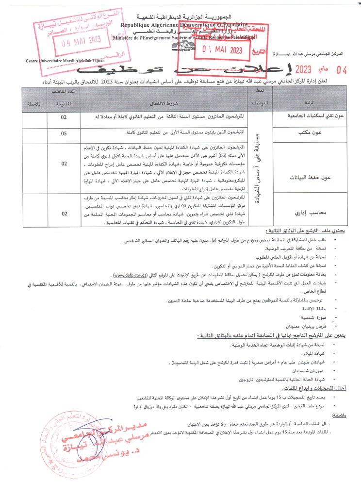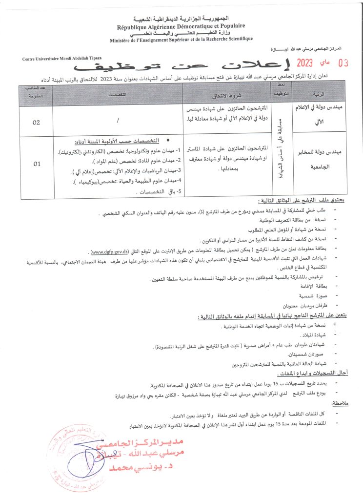 الرئيسية/إعلانات/إعلان عن توظيف بالمركز الجامعي مرسلي عبد الله تيبازة إعلاناتإعلانات هامةموظفين إعلان عن توظيف بالمركز الجامعي مرسلي عبد الله تيبازة 4 مايو 2023 9٬063 أقل من دقيقة الوسومالمركز الجامعي تيبازة المركز الجامعي مرسلي عبد الله تيبازة تيبازة 4 مايو 2023 9٬063 أقل من دقيقة اظهر المزيد شاركها فيسبوك تويتر لينكدإن مشاركة عبر البريد طباعة