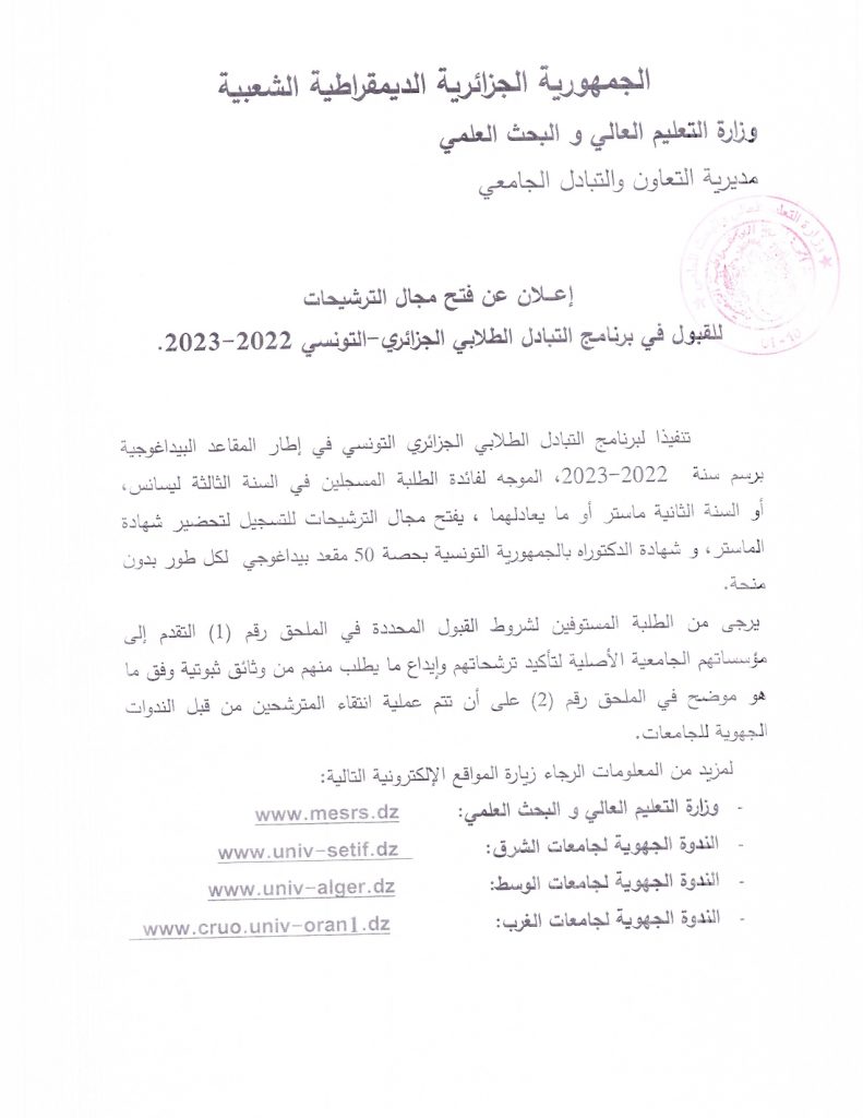 الرئيسية/إعلانات/إعلان عن فتح الترشيحات للقبول في برنامج التبادل الطلابي الجزائري التونسي إعلاناتطلبة إعلان عن فتح الترشيحات للقبول في برنامج التبادل الطلابي الجزائري التونسي 8 مايو 2022 1٬104 أقل من دقيقة الوسومالجزائر المركز الجامعي تيبازة المركز الجامعي مرسلي عبد الله تيبازة تونس تيبازة منح دراسية 8 مايو 2022 1٬104 أقل من دقيقة اظهر المزيد شاركها فيسبوك تويتر لينكدإن مشاركة عبر البريد طباعة