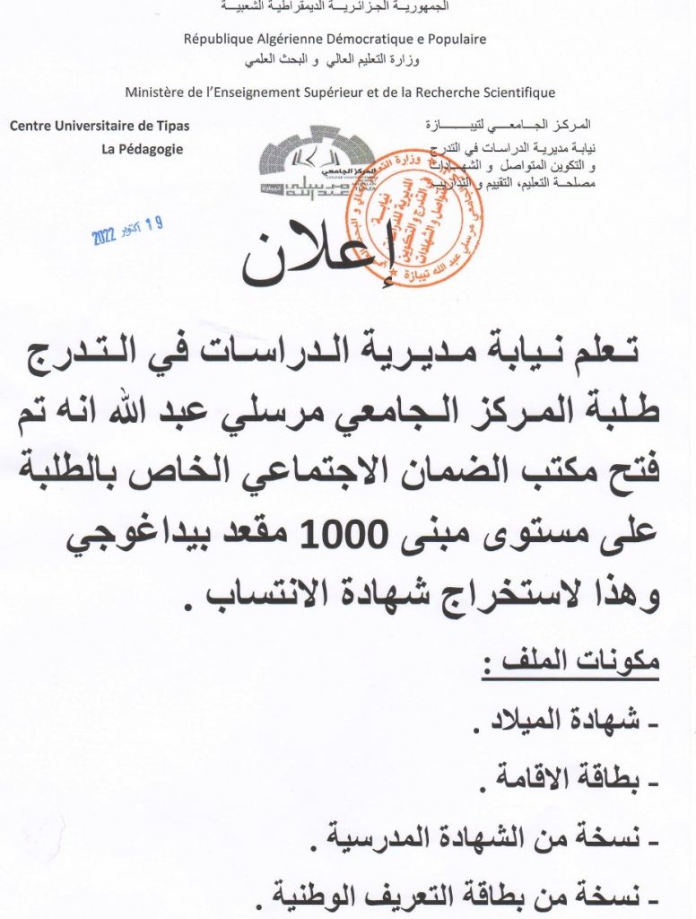 الرئيسية/نيابة المديرية للدراسات في التدرج والتكوين المتواصل والشهادات/إعلانات البيداغوجيا/إعلان عن فتح مكتب للضمان الاجتماعي لفائدة الطلبة إعلانات البيداغوجياإعلانات هامة إعلان عن فتح مكتب للضمان الاجتماعي لفائدة الطلبة 19 أكتوبر 2022 1٬138 أقل من دقيقة 19 أكتوبر 2022 1٬138 أقل من دقيقة اظهر المزيد شاركها فيسبوك تويتر لينكدإن مشاركة عبر البريد طباعة