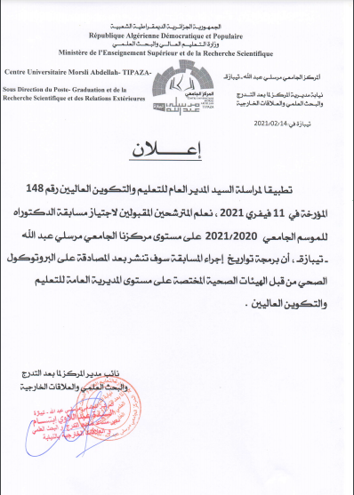 الرئيسية/إعلانات/إعلان للمترشحين المقبولين لاجتياز مسابقة الدكتوراه إعلاناتاعلانات إعلان للمترشحين المقبولين لاجتياز مسابقة الدكتوراه 16 فبراير 2021 3٬332 أقل من دقيقة 16 فبراير 2021 3٬332 أقل من دقيقة اظهر المزيد شاركها فيسبوك تويتر لينكدإن مشاركة عبر البريد طباعة