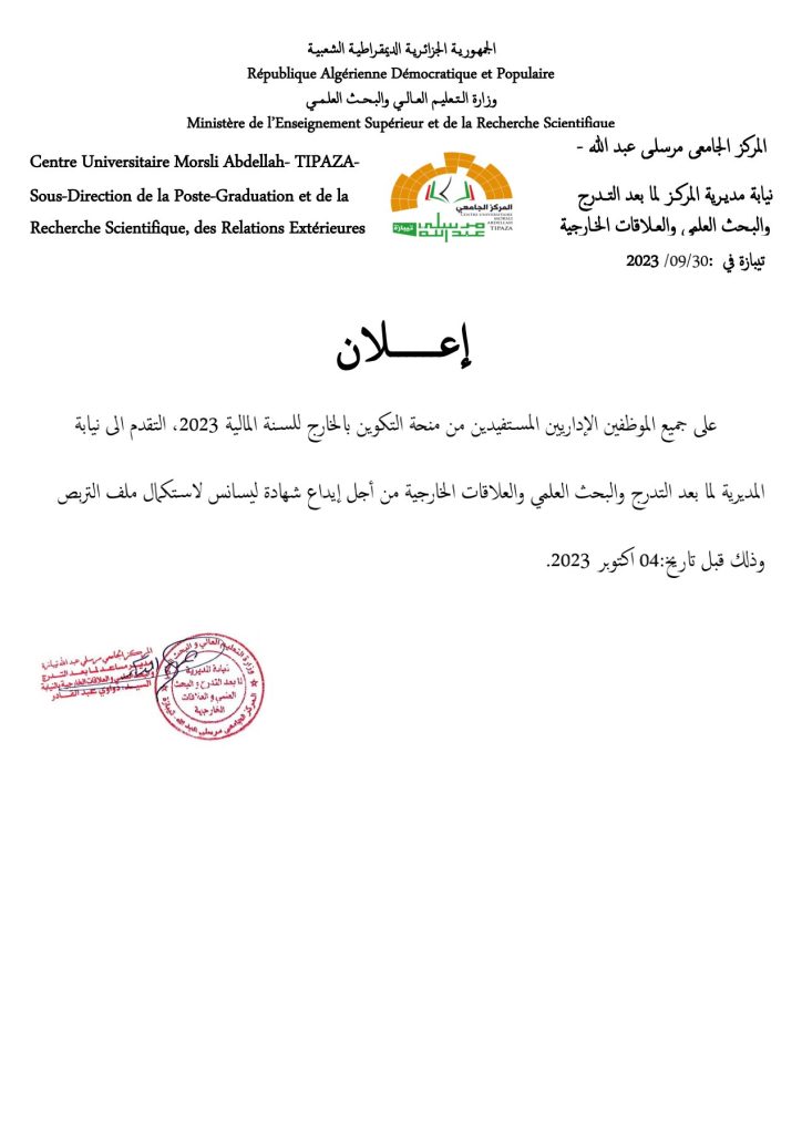 الرئيسية/إعلانات/إعلان هام للموظفين بشأن التكوين بالخارج لسنة 2023 إعلاناتموظفين إعلان هام للموظفين بشأن التكوين بالخارج لسنة 2023 30 سبتمبر 2023 1٬696 أقل من دقيقة 30 سبتمبر 2023 1٬696 أقل من دقيقة اظهر المزيد شاركها فيسبوك تويتر لينكدإن مشاركة عبر البريد طباعة