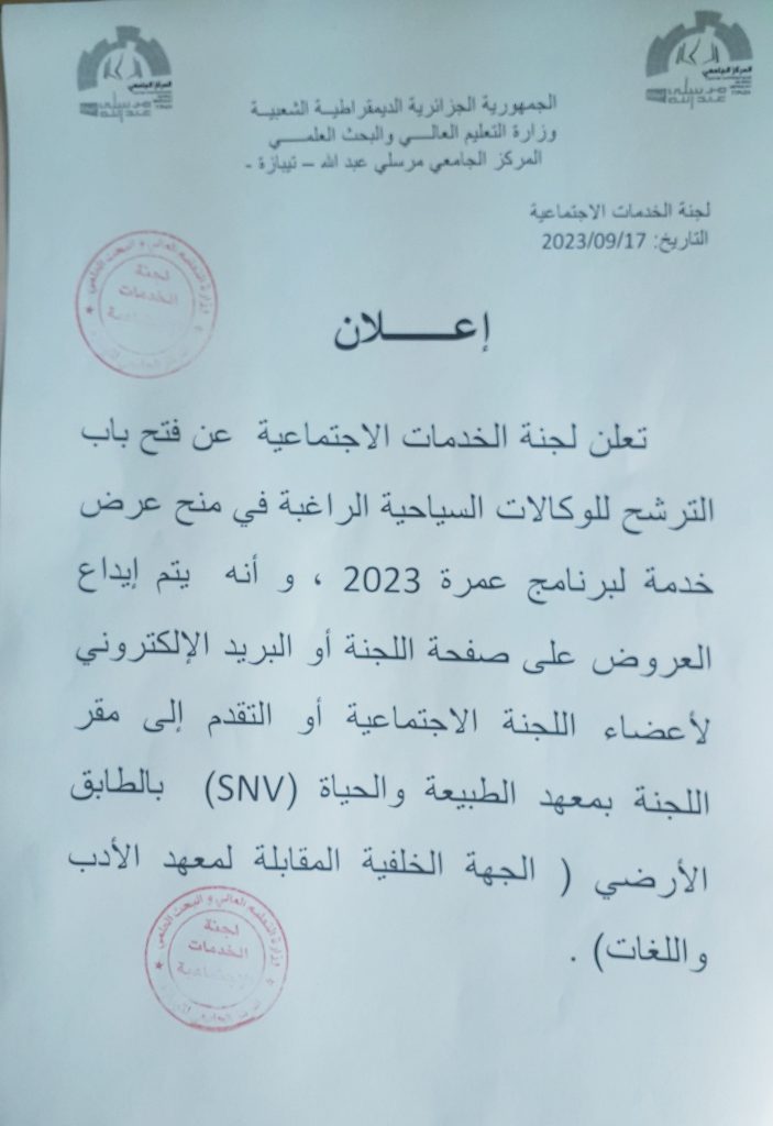الرئيسية/إعلانات/إعلن عن الترشح لمنح عرض خدمة لبرنامج العمرة 2023 إعلاناتلجنة الخدمات الإجتماعية إعلن عن الترشح لمنح عرض خدمة لبرنامج العمرة 2023 17 سبتمبر 2023 632 أقل من دقيقة 17 سبتمبر 2023 632 أقل من دقيقة اظهر المزيد شاركها فيسبوك تويتر لينكدإن مشاركة عبر البريد طباعة