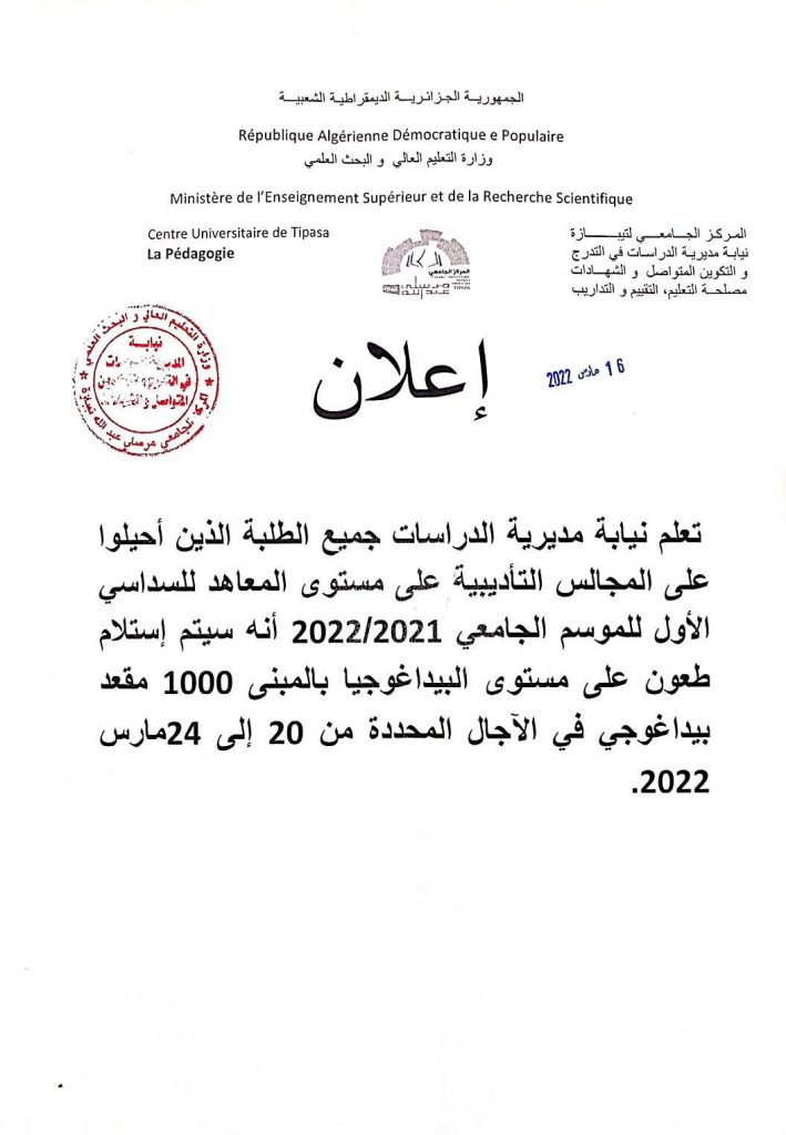 الرئيسية/إعلانات/اعلان للطلبة الذين احيلوا على المجالس التاديبية إعلاناتطلبة اعلان للطلبة الذين احيلوا على المجالس التاديبية 16 مارس 2022 921 أقل من دقيقة 16 مارس 2022 921 أقل من دقيقة اظهر المزيد شاركها فيسبوك تويتر لينكدإن مشاركة عبر البريد طباعة
