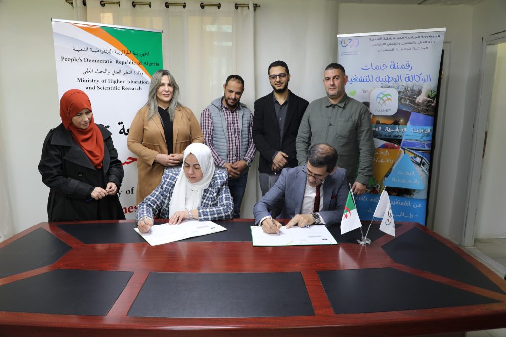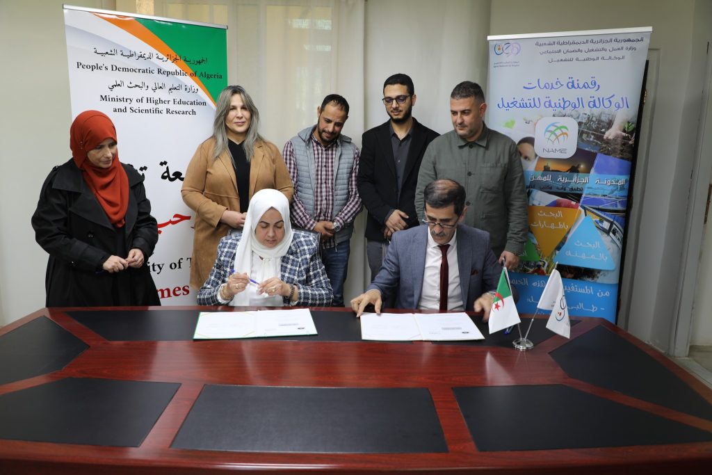 وقع الدكتور محمد حديدي مدير #جامعة_تيبازة إتفاقية تعاون مع السيدة مديرة الفرع الولائي للتشغيل بحضور السيد الطيب مقراني الأمين العام للجامعة وكذا الدكتور صلاح الدين قدري نائب المدير المكلف بالبحث العلمي والعلاقات الخارجية,إضافة إلى الأستاذة بلكحل نوال مديرة مركز تطوير المقاولاتية و الاستاذ مروان عبد الرزاق مدير حاضنة الأعمال الجامعية . الاتفاقية تهدف إلى العمل على إجراءات دعم المجتمع الطلابي من خلال نوادي البحث عن العمل – ورشات – أيام اعلامية وأيام تحسيسبة من أجل تعزيز ثقافة نشطة للبحث عن العمل في سوق الشغل التي يمكن أن تحسن قابلية توظيف خريجي الجامعات .