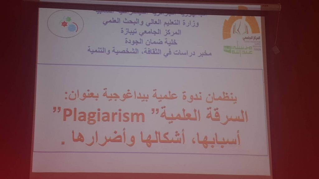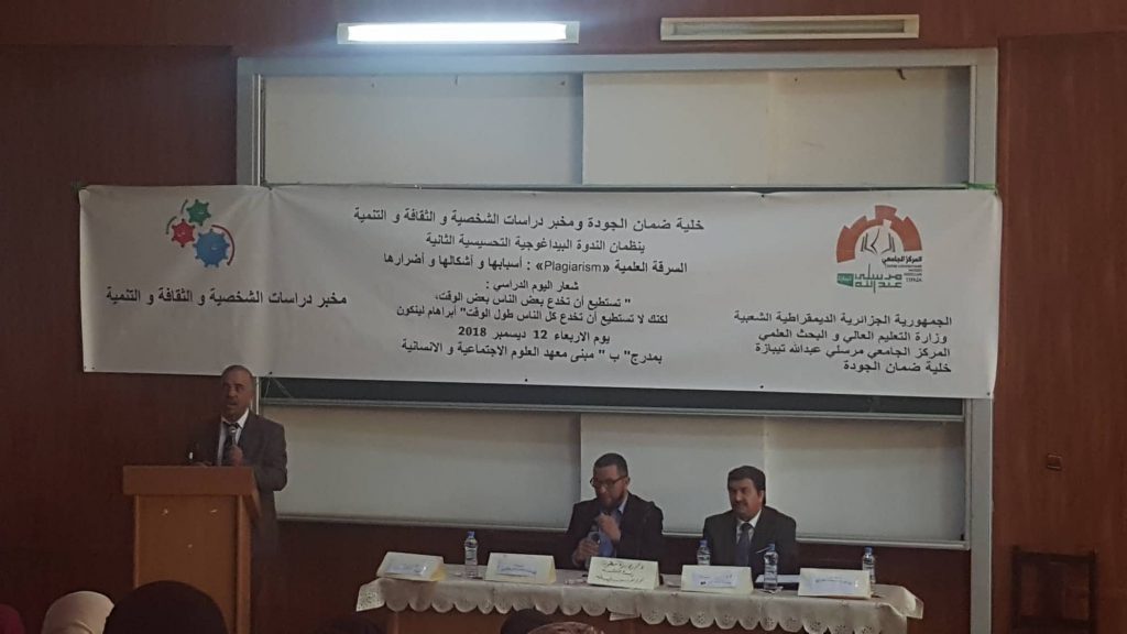 نظمت خلية ضمان الجودة يوما دراسيا وذلك يوم 12ديسمبر2018 تحت عنوان: السرقة العلمية « Plagiarism» : أسبابها و أشكالها و أضراره
