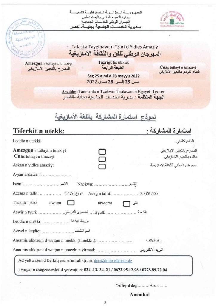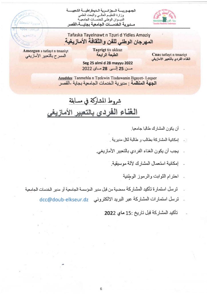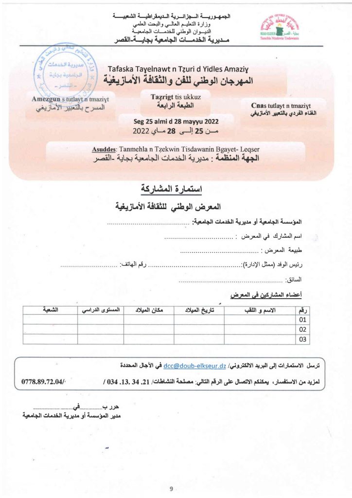 الرئيسية/إعلانات/المهرجان الوطني الجامعي للفن والثقافة الأمازيغية إعلاناتطلبة المهرجان الوطني الجامعي للفن والثقافة الأمازيغية 9 مايو 2022 950 أقل من دقيقة الوسومالمركز الجامعي تيبازة المركز الجامعي مرسلي عبد الله تيبازة تيبازة 9 مايو 2022 950 أقل من دقيقة اظهر المزيد شاركها فيسبوك تويتر لينكدإن مشاركة عبر البريد طباعة
