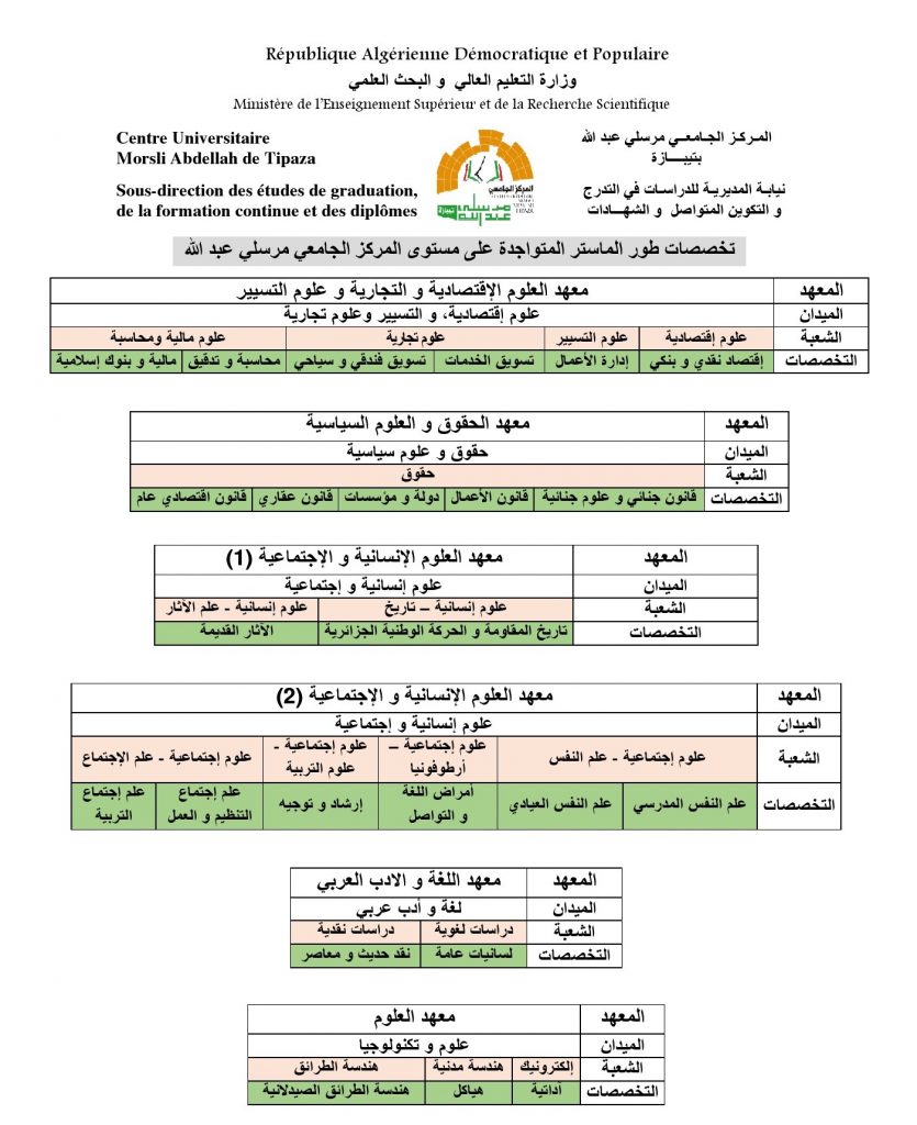 الرئيسية/نيابة المديرية للدراسات في التدرج والتكوين المتواصل والشهادات/إعلانات البيداغوجيا/تخصصات طور الماستر المتواجدة على مستوى المركز الجامعي مرسلي عبد الله إعلانات البيداغوجياطلبة تخصصات طور الماستر المتواجدة على مستوى المركز الجامعي مرسلي عبد الله 26 سبتمبر 2021 2٬162 أقل من دقيقة 26 سبتمبر 2021 2٬162 أقل من دقيقة اظهر المزيد شاركها فيسبوك تويتر لينكدإن مشاركة عبر البريد طباعة