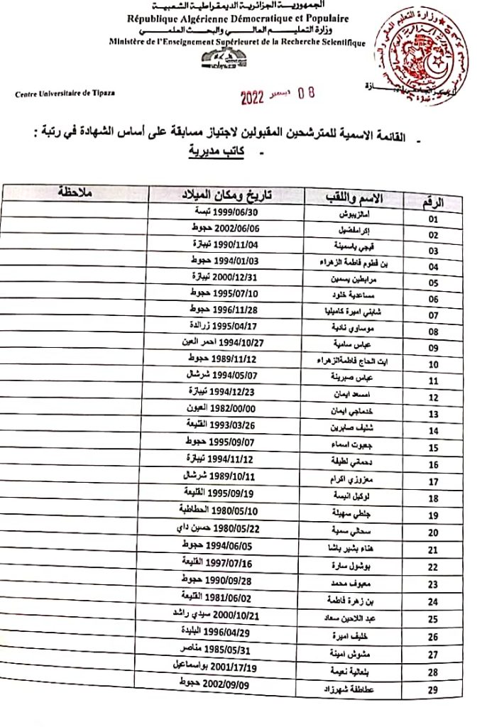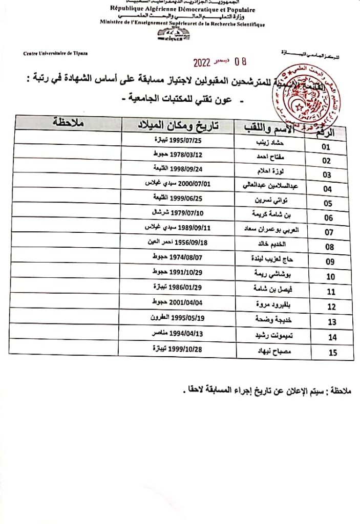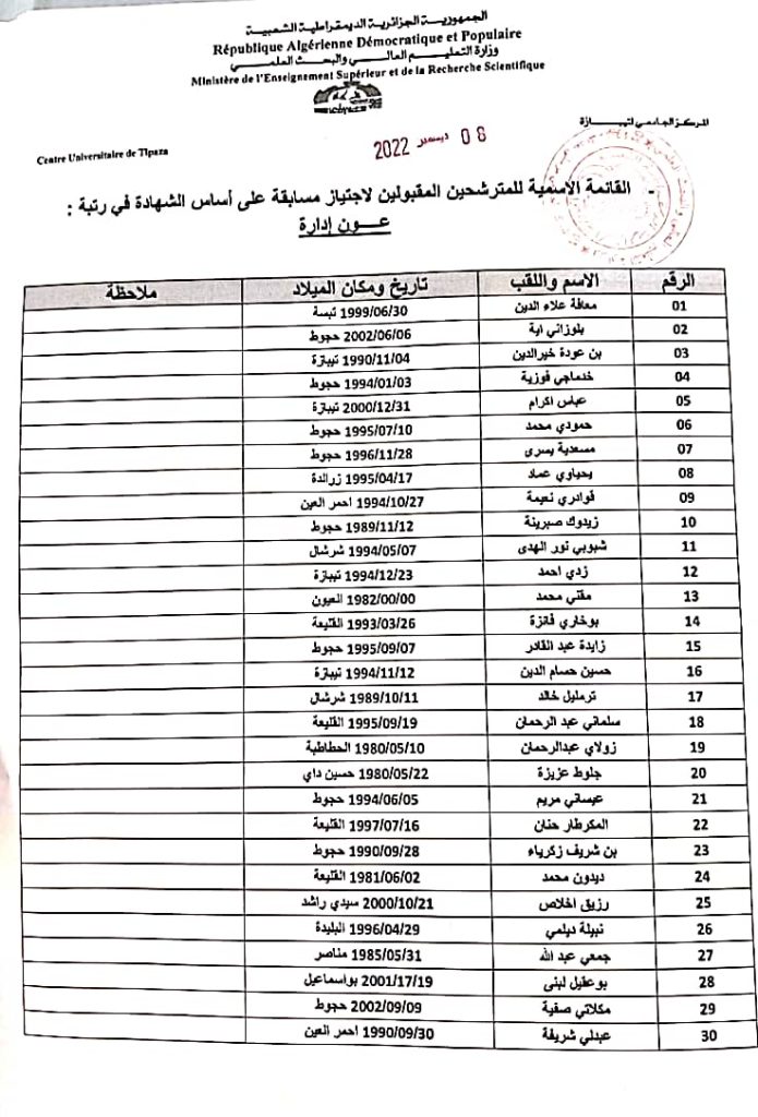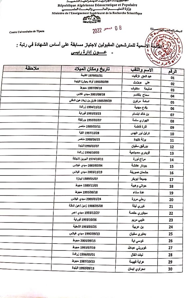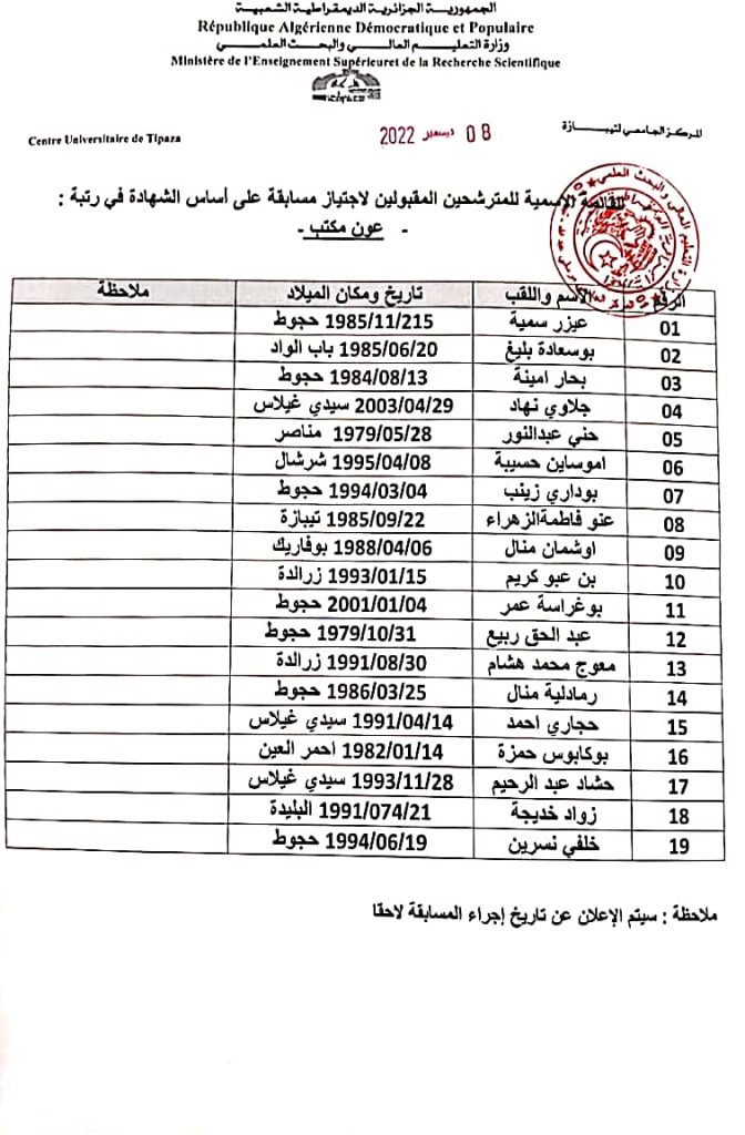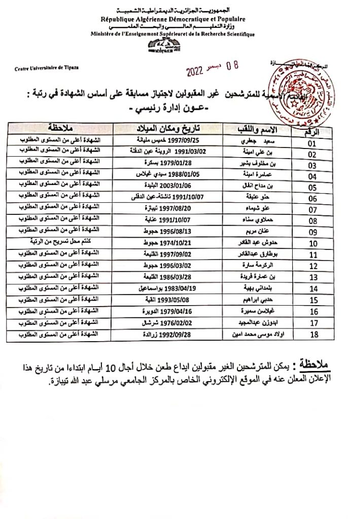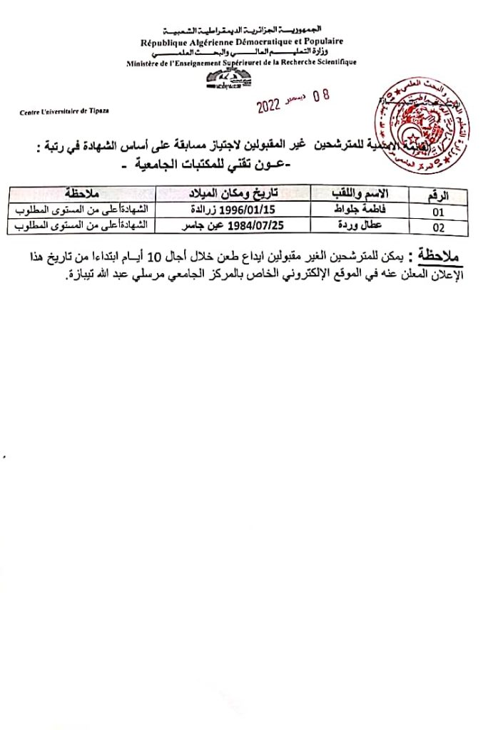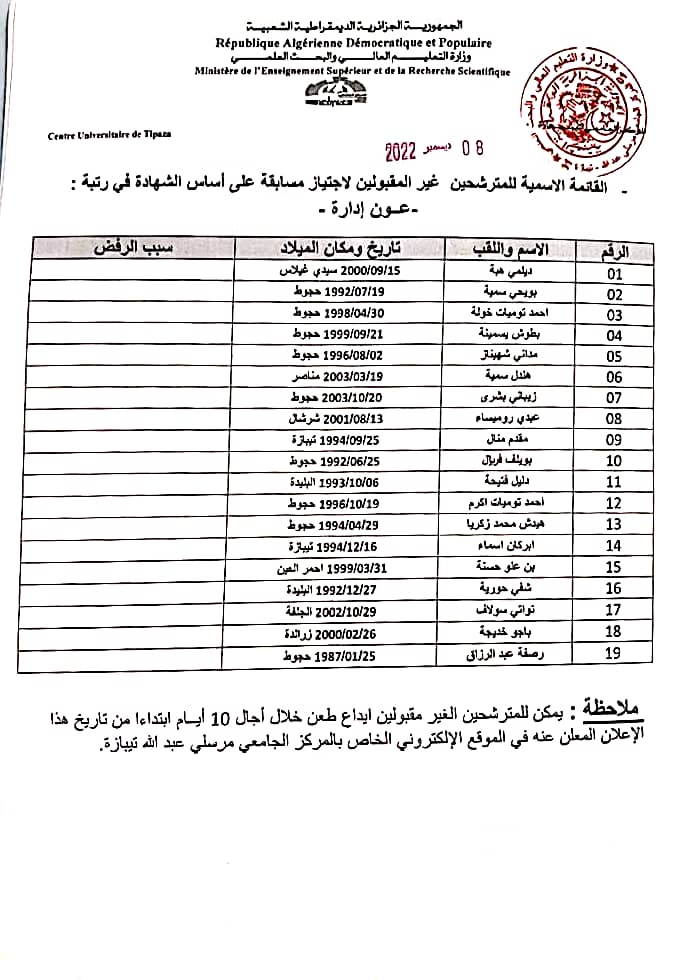 الرئيسية/إعلانات/قائمة المقبولين لإجتياز مسابقة التوظيف بالمركز الجامعي تيبازة إعلاناتموظفين قائمة المقبولين لإجتياز مسابقة التوظيف بالمركز الجامعي تيبازة 8 ديسمبر 2022 4٬898 أقل من دقيقة 8 ديسمبر 2022 4٬898 أقل من دقيقة اظهر المزيد شاركها فيسبوك تويتر لينكدإن مشاركة عبر البريد طباعة