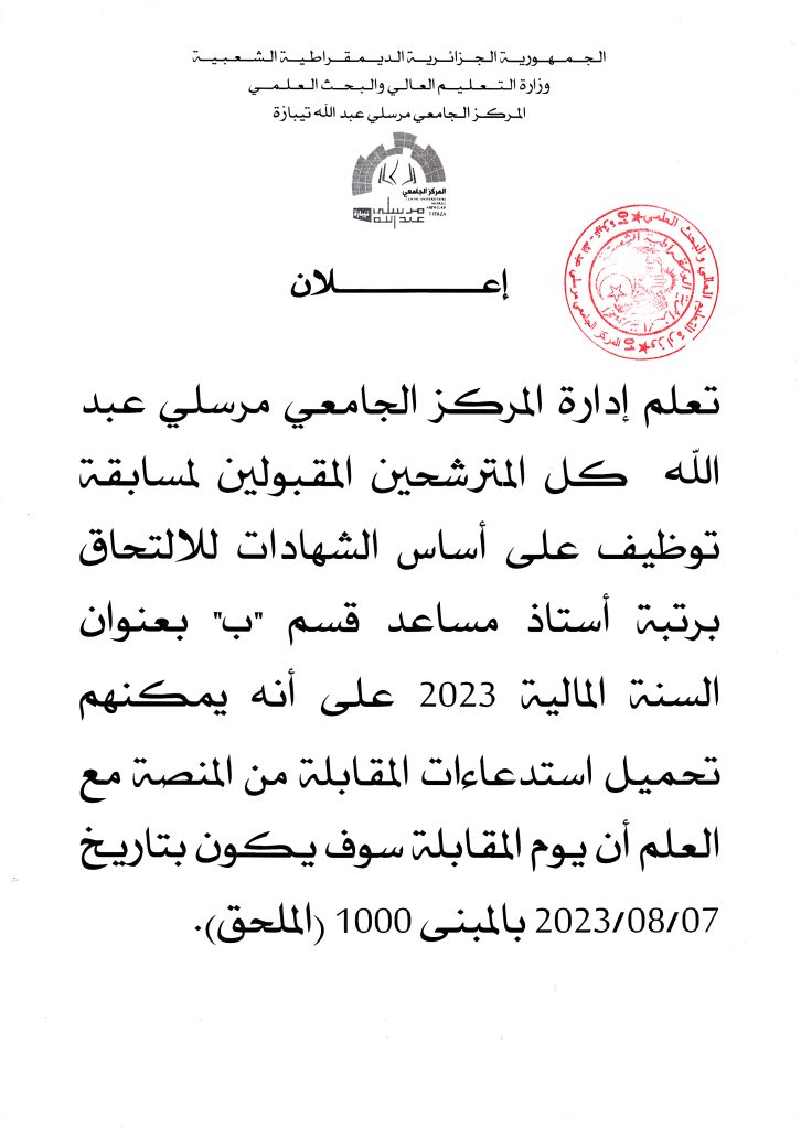 الرئيسية/إعلانات/أساتذة/قائمة المقبولين للترشح لمسابقة توظيف أستاذ مساعد قسم *ب* أساتذةإعلاناتإعلانات هامة قائمة المقبولين للترشح لمسابقة توظيف أستاذ مساعد قسم *ب* 26 يوليو 2023 6٬939 أقل من دقيقة الوسومالمركز الجامعي تيبازة المركز الجامعي مرسلي عبد الله تيبازة توظيف تيبازة وزير التعليم العالي والبحث العلمي 26 يوليو 2023 6٬939 أقل من دقيقة اظهر المزيد شاركها فيسبوك تويتر لينكدإن مشاركة عبر البريد طباعة
