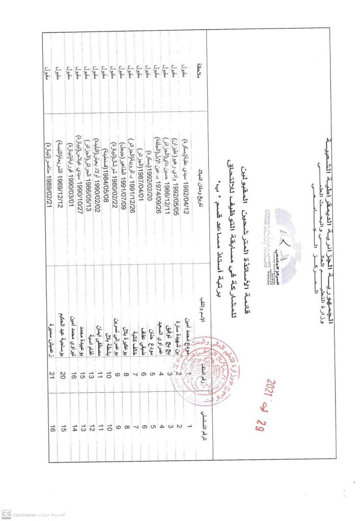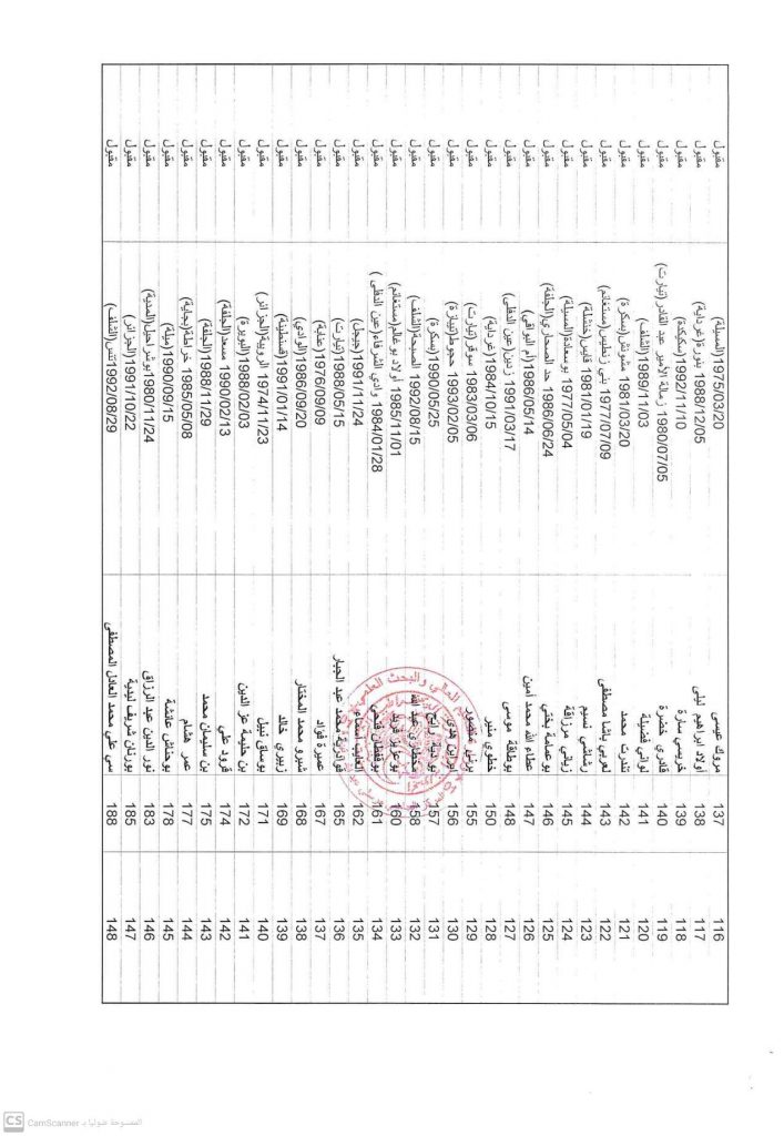 قوائم الأساتذة المترشحين المقبولين لمسابقة التوظيف للالتحاق برتبة أستاذ مساعد قسم ب