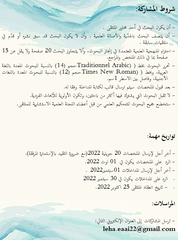الرئيسية/إعلانات/أساتذة/مؤتمردولي حول الماء والانسان عبر العصور التاريخية أساتذةأيام تكوينيةإعلاناتاعلاناتتظاهرات علميةملتقيات دولية مؤتمردولي حول الماء والانسان عبر العصور التاريخية 6 أبريل 2022 2٬200 أقل من دقيقة 6 أبريل 2022 2٬200 أقل من دقيقة اظهر المزيد شاركها فيسبوك تويتر لينكدإن مشاركة عبر البريد طباعة