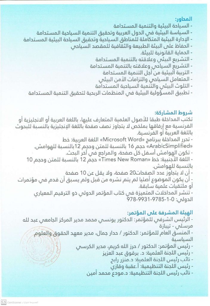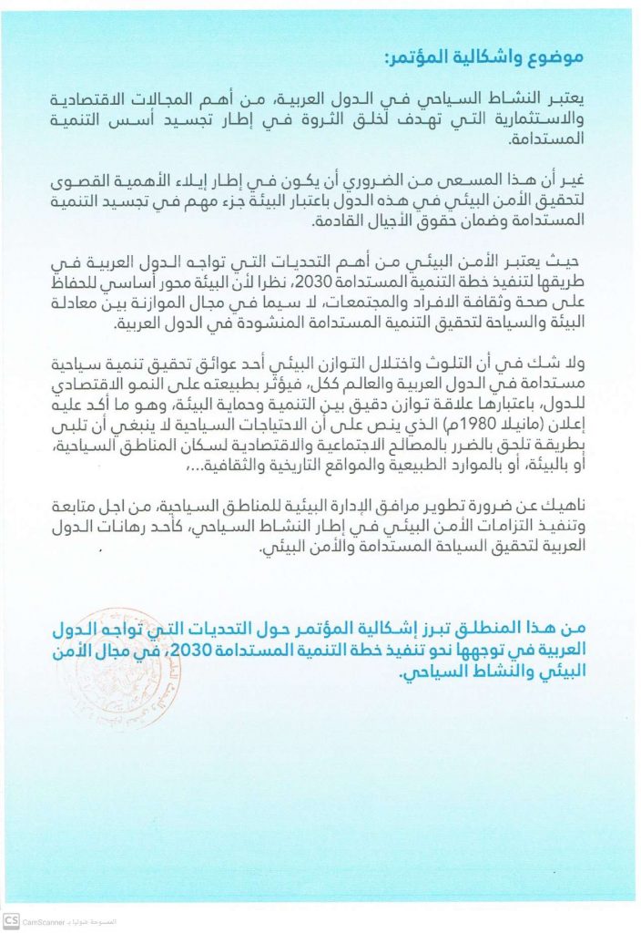 مؤتمر دولي حول متغيرات الأمن البيئي وأثره على تحديات السياحة والتنمية المستدامة في الدول العربية.