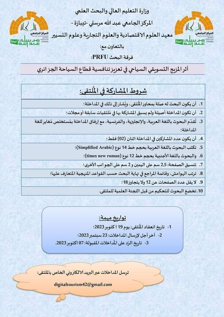 الرئيسية/إعلانات/أساتذة/ملتقى وطني حول الاقتصاد الرقمي في القطاعات الخدماتية السياحية الرهانات والآفاق أساتذةإعلاناتاعلاناتتظاهراتتظاهرات علميةملتقيات وطنيةنيابة المديرية لما بعد التدرج و البحث العلمي و العلاقات الخارجية ملتقى وطني حول الاقتصاد الرقمي في القطاعات الخدماتية السياحية الرهانات والآفاق 5 أكتوبر 2023 1٬615 أقل من دقيقة 5 أكتوبر 2023 1٬615 أقل من دقيقة اظهر المزيد شاركها فيسبوك تويتر لينكدإن مشاركة عبر البريد طباعة