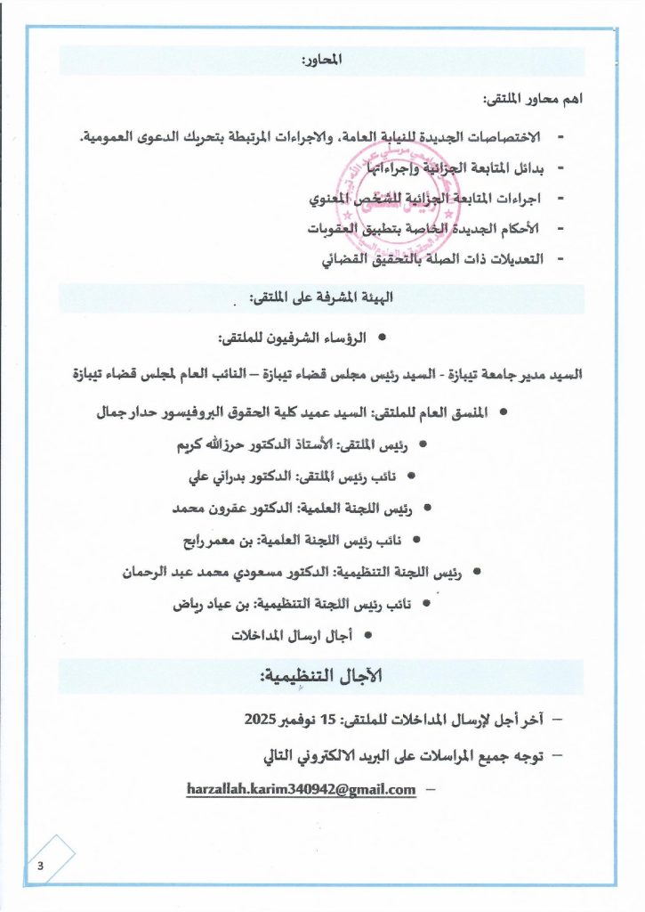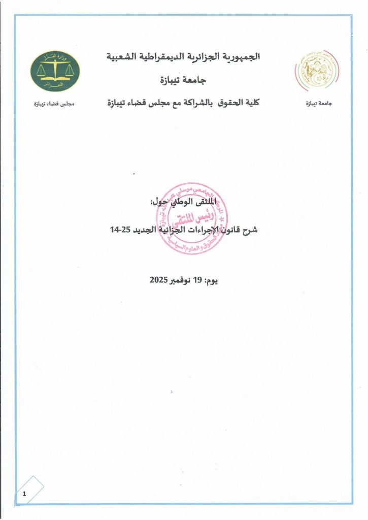 الرئيسية/أحداث/ملتقى وطني حول شرح قانون الإجراءات الجزائية الجديد 25-14 أحداثأساتذةإعلاناتاعلاناتملتقيات وطنية ملتقى وطني حول شرح قانون الإجراءات الجزائية الجديد 25-14 منذ 4 ساعات 198 أقل من دقيقة منذ 4 ساعات 198 أقل من دقيقة اظهر المزيد شاركها فيسبوك تويتر لينكدإن مشاركة عبر البريد طباعة