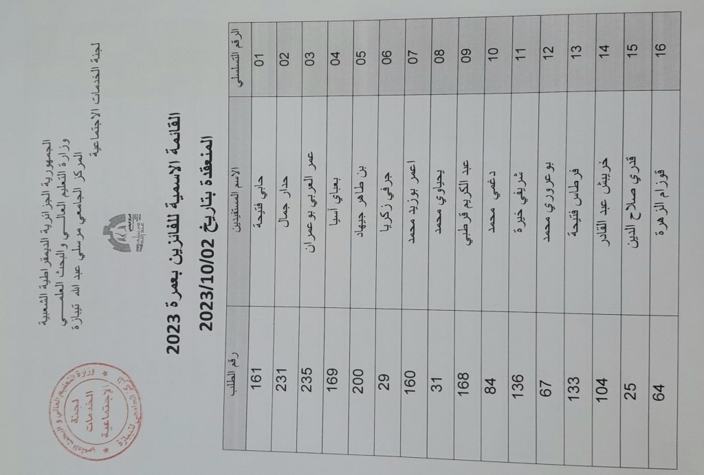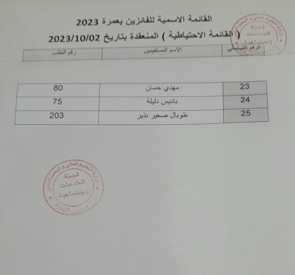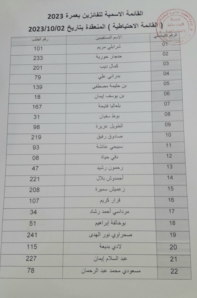 قائمة الناجحين في عمرة 2023 وكذا القائمة الاحتياطية