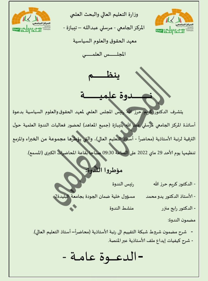 الرئيسية/إعلانات/أساتذة/ندوة علمية لفائدة الأساتذة حول الترقية لرتبة الأستاذية أساتذةإعلانات ندوة علمية لفائدة الأساتذة حول الترقية لرتبة الأستاذية 22 مايو 2022 1٬292 أقل من دقيقة 22 مايو 2022 1٬292 أقل من دقيقة اظهر المزيد شاركها فيسبوك تويتر لينكدإن مشاركة عبر البريد طباعة