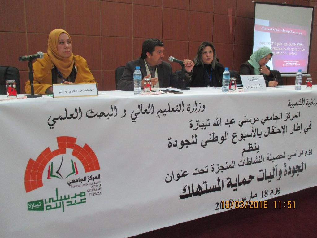 نظم المركز الجامعي مرسلي عبد الله يوما دراسيا كحوصلة عن الجودة و آليات حماية المستهلك 18 مارس 2018