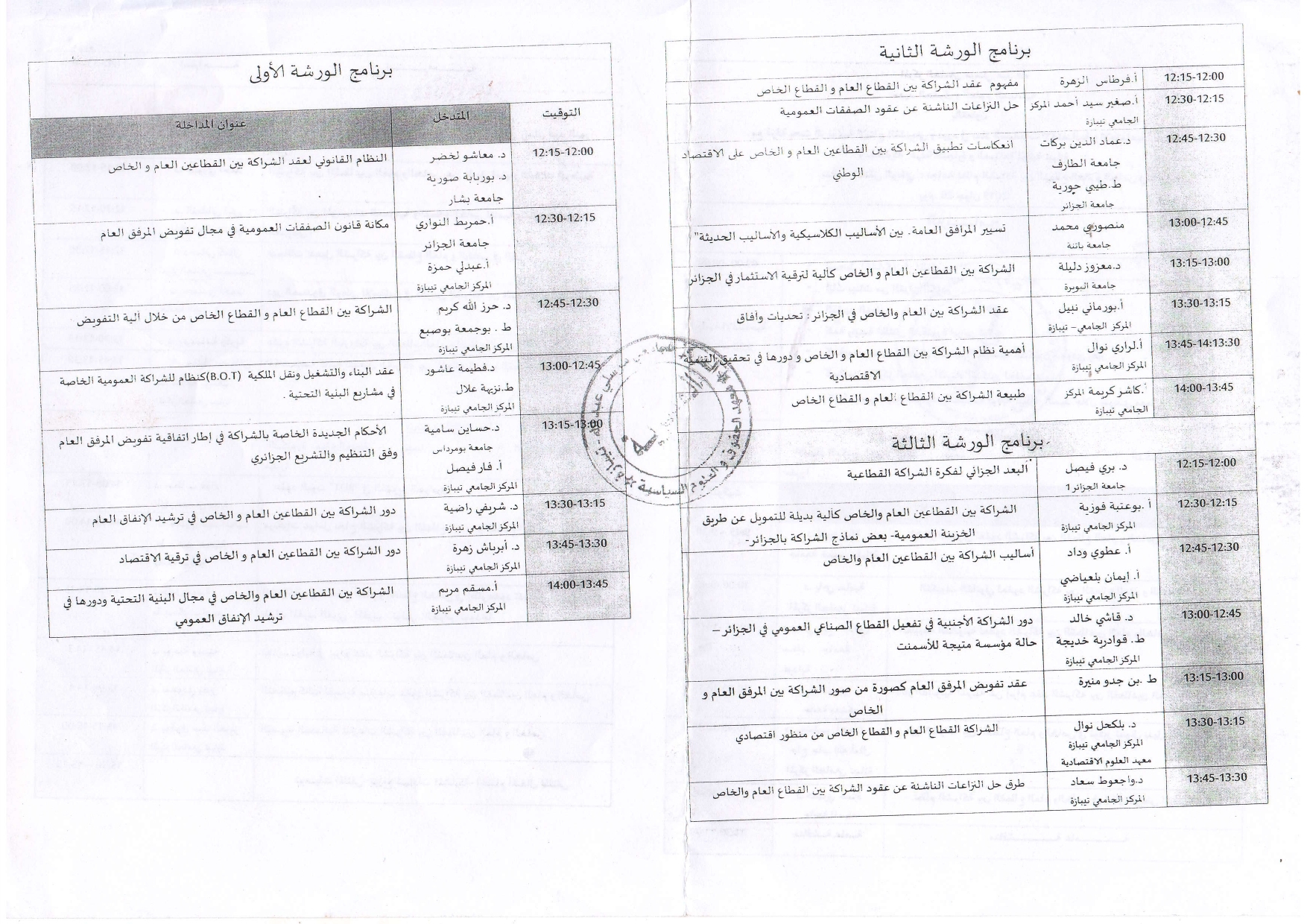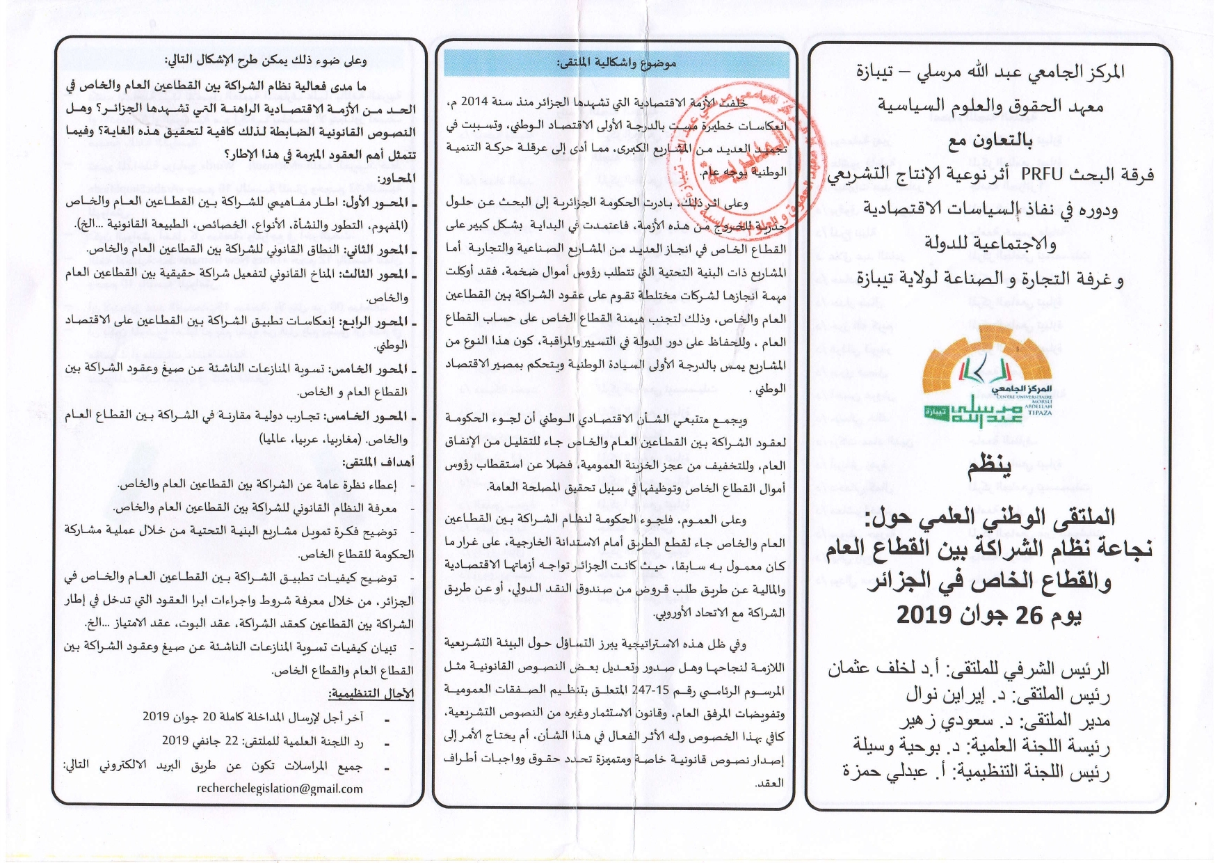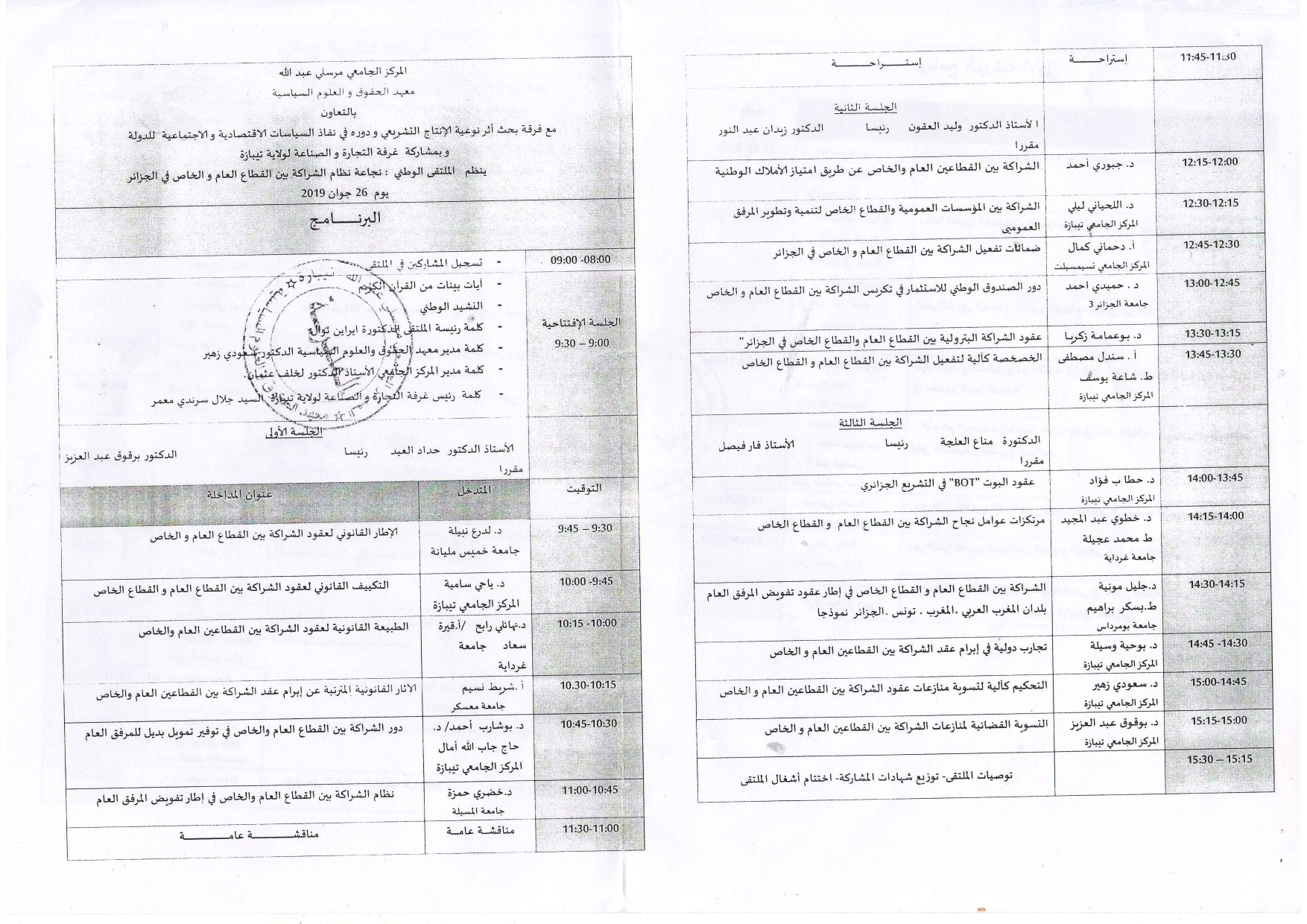الملتقى الوطني العلمي الموسوم بنجاعة نظام الشراكة بين القطاع العام و الخاص في الجزائر
