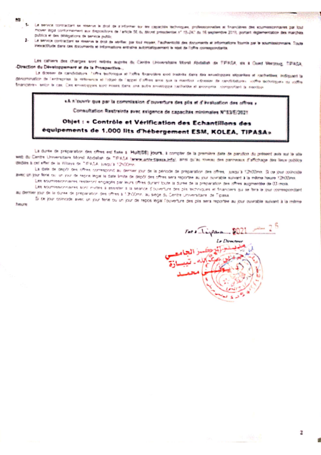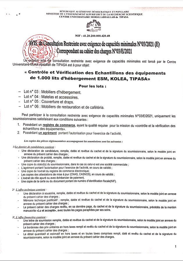 الرئيسية/إعلانات/إستشارات/Avis de Consultation Restreinte avec Exigence de Capacités Minimales N°03/2021 (E) Correspondant au Cahier des Charges N°03/E/2021 إستشاراتإعلاناتطلبات العروض و الاستشاراتمشاريع التجهيز Avis de Consultation Restreinte avec Exigence de Capacités Minimales N°03/2021 (E) Correspondant au Cahier des Charges N°03/E/2021 26 سبتمبر 2021 859 أقل من دقيقة 26 سبتمبر 2021 859 أقل من دقيقة اظهر المزيد شاركها فيسبوك تويتر لينكدإن مشاركة عبر البريد طباعة